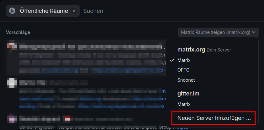 Das durchsucht aber nur Räume auf dem "eigenen" Server bzw, wo eure Matrix-Adresse registriert ist. Lohnenswerte Gruppen sind z.B.