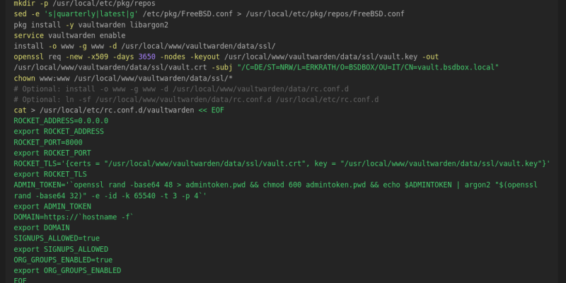 Der allererste Artikel dieser Webseite (und der letzte für dieses Jahr) wurde komplett überarbeitet und auf den FreeBSD reinen Betrieb umgestellt. Damit lässt sich ein eigener Vaultwarden Server noch einfacher erstellen.