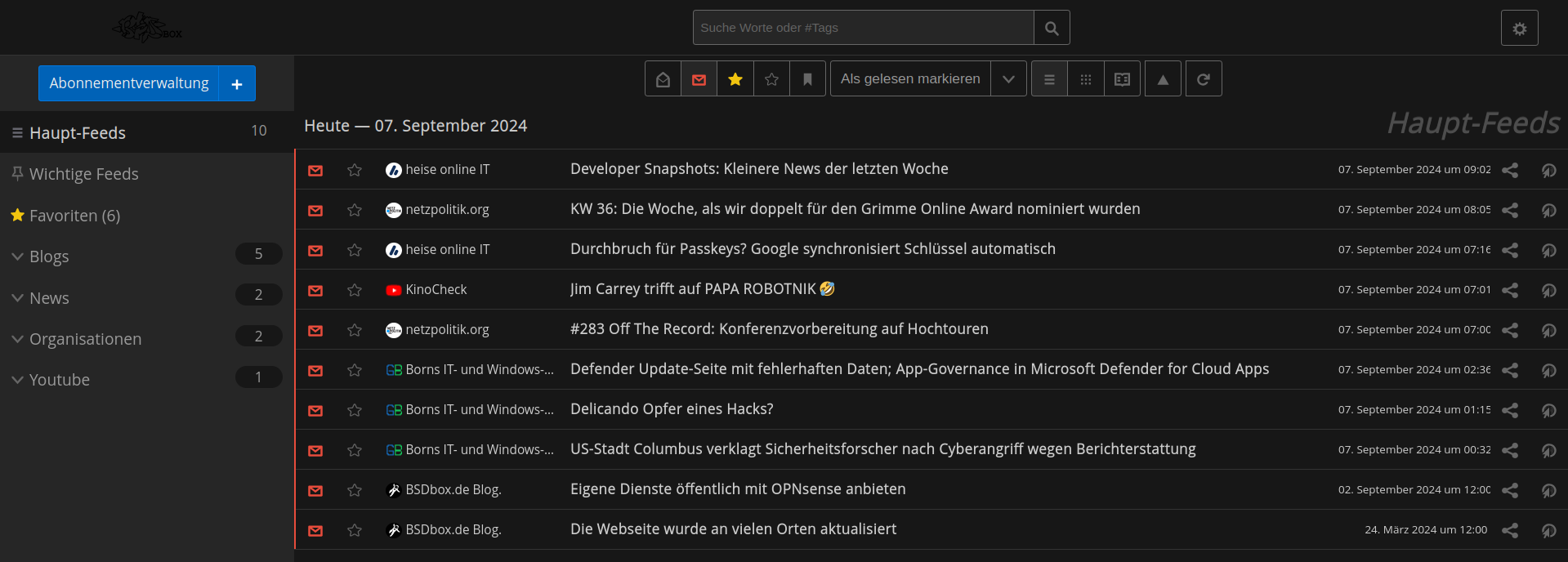 Mit meiner neuen Artikelserie: FreeBSD als Server und der Abkündigung von TrueNAS CORE wurde nun der FreshRSS Artikel an ein reines FreeBSD Setup angepasst und iocage durch Bastille ausgetauscht. Dazu kamen noch diverse Änderungen der abhängigen Artikel.