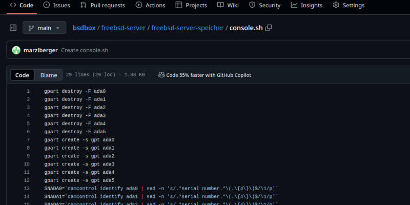 Mit meiner neuen Artikelserie: FreeBSD als Server wurde auch der "Konsole only Bereich" weitergeführt. Da es aber immer etwas zu verbessern gibt, wurden alle diese Sektionen auf Github ausgelagert und verlinkt.